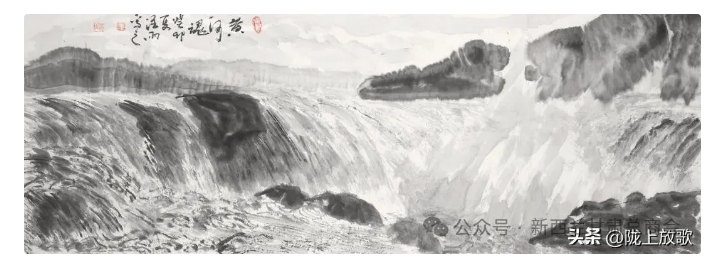 何建祥先生懷著對母親河的深厚感情,以寫生為基礎:以表現(xiàn)黃河奔放、蒼茫、雄渾的品格為立意,以大寫意為藝術語言,描繪出一幅幅波瀾壯闊的黃河景觀。在他的畫筆下黃河時而溫婉柔美,時而沉穩(wěn)包容,時而咆哮怒吼,讀他的畫,能感受到那種百折不撓的民族精神,有很強藝術感染力。
