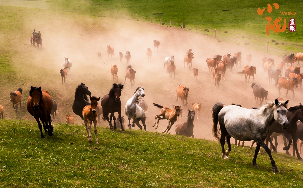 這里有比塞罕壩更壯觀的萬馬奔騰。藍(lán)天白云下,一匹匹雄健的駿馬在疾風(fēng)中奔馳,從一望無際的草場上呼嘯而過,長鬃飛揚(yáng),浩浩蕩蕩。