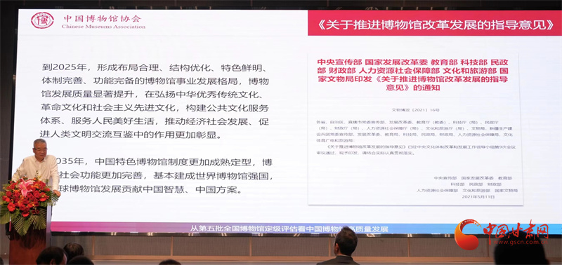 交流會(huì)上,中國(guó)博物館協(xié)會(huì)理事長(zhǎng)劉曙光作了《從第五批全國(guó)博物館定級(jí)評(píng)估看中國(guó)博物館高質(zhì)量發(fā)展》的主旨發(fā)言,中央廣播電視總臺(tái)《簡(jiǎn)牘探中華》節(jié)目總導(dǎo)演馬洪濤,中國(guó)建筑西北設(shè)計(jì)研究院有限公司副總經(jīng)理靳江,深圳市藝博堂數(shù)字文化科技集團(tuán)有限公司總經(jīng)理鄭洵,甘肅簡(jiǎn)牘博物館副館長(zhǎng)楊眉分別進(jìn)行了主題分享,為甘肅省博物館事業(yè)的高質(zhì)量發(fā)展建言獻(xiàn)策。