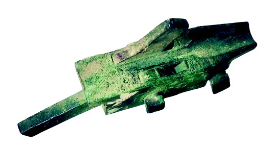 出土的青銅弩機(jī)共三件,制作精巧,外觀平整光潔。大件長(zhǎng)14.5厘米,寬12.8厘米,重量為1031.9克。中件長(zhǎng)14.9厘米,寬7.4厘米,重量為540克。小件長(zhǎng)10厘米,寬4厘米,重量為11克。這三件弩機(jī)除了小件稍有點(diǎn)殘缺外,其余兩件基本完整。三件弩機(jī)造型沉穩(wěn),小巧玲瓏,且機(jī)廓都由青銅鑄造,這在已出土的弓箭類(lèi)文物中比較罕見(jiàn)。經(jīng)過(guò)專(zhuān)家鑒定,這是三國(guó)時(shí)期魏蜀征戰(zhàn)天水時(shí)的遺留文物。