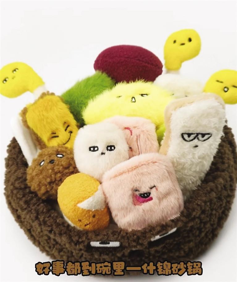 記者看到,“麻辣燙”和“砂鍋”毛絨玩具花束有多個(gè)單品,模擬了丸子、蟹排、年糕、香菇等菜品。而且每款都有自己的名字——嘻嘻西蘭花、香香香菇、黏黏年糕、哇哇菜、謝謝蟹排、玩去吧丸子。可愛有趣的毛絨玩具再次走紅網(wǎng)絡(luò),成為不少“大朋友”的必入文創(chuàng)單品。連日來,這款單品引發(fā)近20萬人涌入天貓旗艦店搶購,“麻辣燙”幾度售罄。甘肅省博物館文創(chuàng)中心負(fù)責(zé)人崔又心介紹,“麻辣燙”火了之后,天貓店客服每天都會(huì)收到來自消費(fèi)者“求補(bǔ)貨”留言。