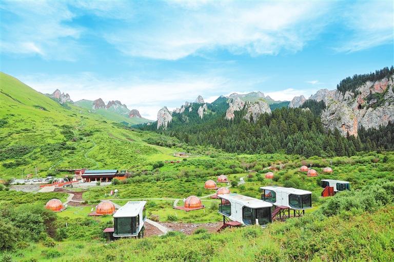 夏河縣的??撇菰希稳嗽谏介g草場、樹林河邊支起一頂頂帳篷,白天品著飄香的奶茶,晚上躺在草地上仰望星空,很是愜意。