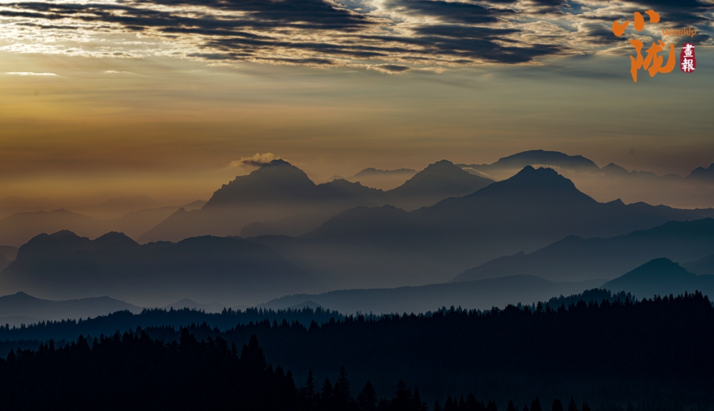 傍晚時(shí)分,天空變得絢爛多彩,晚霞映照白霧,起伏著山巒,坡地和浪漫;幾處白墻黛瓦的民居,升起炊香,滿目清爽之氣彌漫,用詩(shī)意繪就生態(tài)家園。