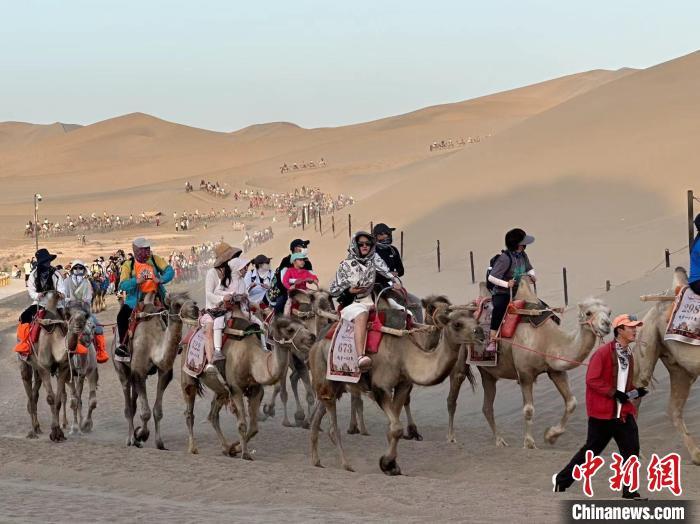 圖為游客在鳴沙山·月牙泉景區(qū)游玩。 戴文昌 攝