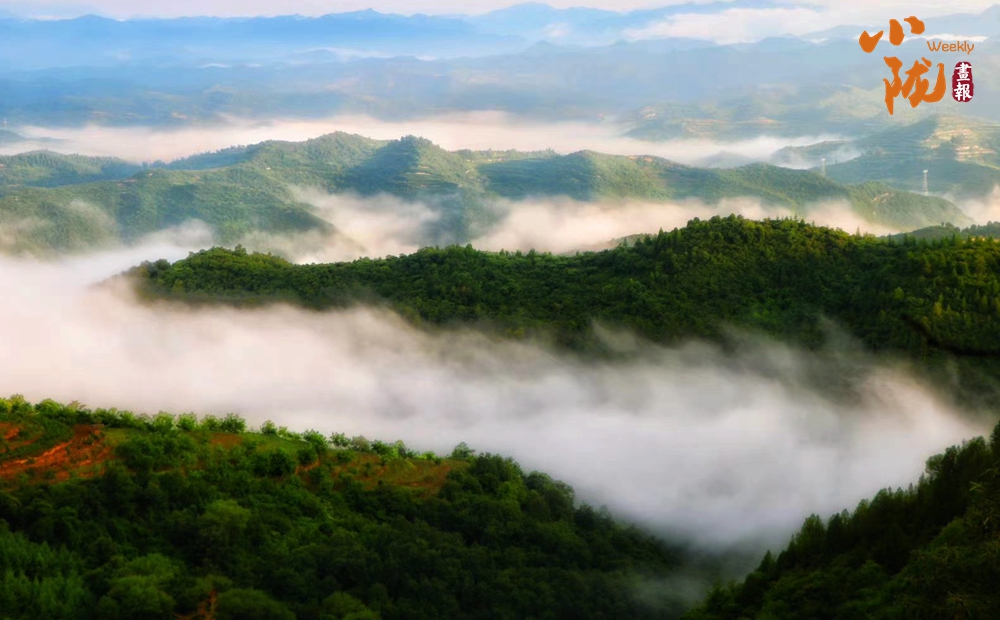 如絲如絮的云霧彌漫了千山萬壑,山巒含翠,霧氣時而翻過座座山峰,時而從山谷間涌起升騰,鑲嵌于層層山巒之間,格外清新靈秀,猶如一幅色彩亮麗的水墨畫。