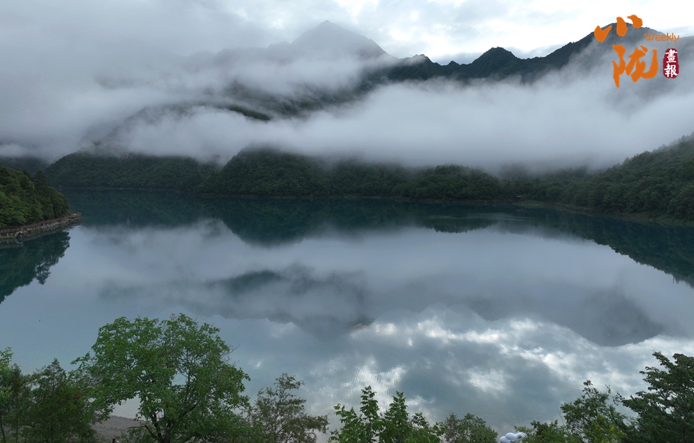 雨后,文縣天池云霧繚繞,翠綠的山巒、碧綠的湖水,相互輝映,美輪美奐,宛若仙境。