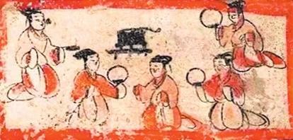 在敦煌及嘉峪關(guān)魏晉墓中,可以看見(jiàn)敦煌人跪坐而食,繼承著古老的傳統(tǒng)。到了這一時(shí)期,大部分已是盤(pán)腿席地而坐,從壁畫(huà)中可以看到人們或盤(pán)腿圍坐在炕上,或在一種和食床一樣高的寬長(zhǎng)條凳上盤(pán)腿或跪坐。這種坐法的優(yōu)點(diǎn)是避免了因久跪大腿血液不易流通而發(fā)麻的弊端,也是受了少數(shù)民族的影響。五代到宋時(shí)期,敦煌已出現(xiàn)了鼓腰凳,人們已經(jīng)垂足坐在上面進(jìn)餐。