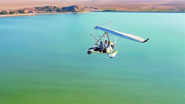 民勤通航樂園飛行營地,各種飛行設備一應俱全,有動力三角翼、自轉旋翼機、輪式動力傘、熱氣球等。游客排著長隊,選擇自己喜歡的飛行設備,體驗低空飛行項目。