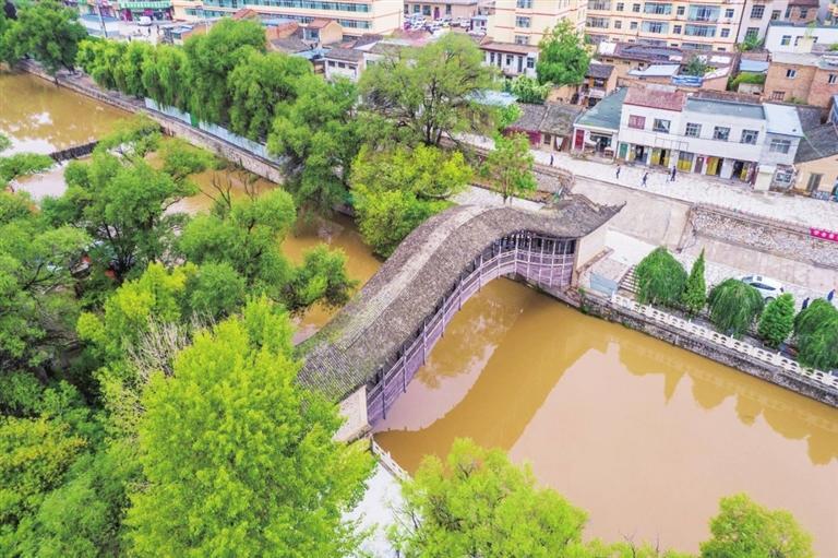 灞陵橋上的眾多匾額中有一幅上書“綰轂秦隴”,寓意渭水將甘肅和陜西緊密地聯(lián)系在一起。