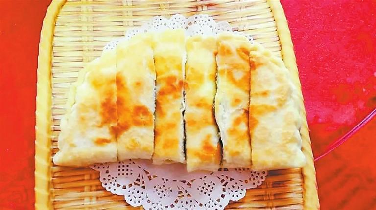 烙饃則是最關鍵的一環(huán),鍋最好是平底,油不宜過多,待油溫上升到一定溫度后,再將麻腐饃放入鍋里,等底面烙熟泛黃后,將其翻面,再熱。這個度的把握也是最考廚藝的,饃要熟卻不能過,皮要黃卻不能焦,待麻腐饃兩面出現(xiàn)微黃色且有脆皮時即可出鍋。