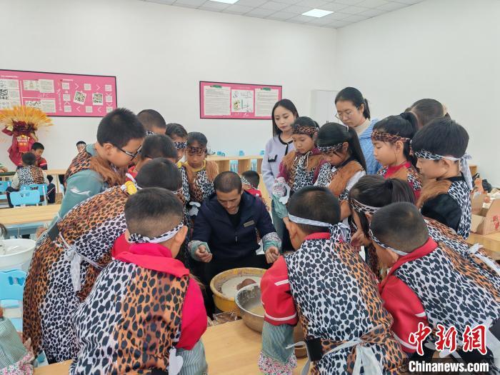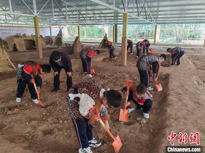 10月16日,大地灣博物館開展“史前工坊”特色主題社教活動,吸引大批孩子參與體驗(yàn)?!?秦安縣委宣傳部供圖)