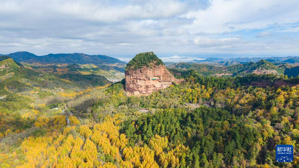這是11月2日拍攝的麥積山石窟秋景(無人機照片)。新華社記者 郎兵兵 攝