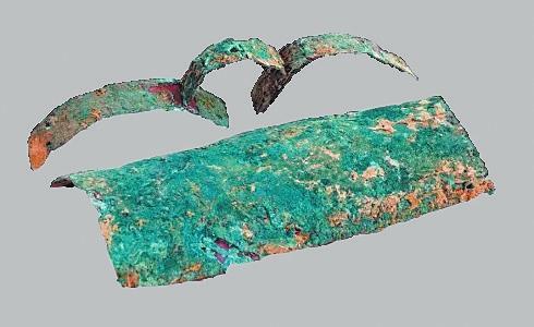 冶金業(yè):辛店文化遺址發(fā)現(xiàn)了一定數(shù)量的早期青銅制品。其中在蓮花臺(tái)遺址瓦渣咀發(fā)現(xiàn)青銅刀2件、錐2件、扣3件。其中一件青銅刀刀身扁薄,凹背弧刃,長(zhǎng)殘4.5厘米、寬1.5厘米;青銅錐錐身挺直,橫剖面呈方形,其中一件殘長(zhǎng)5.2厘米;青銅扣球面或凸面,扣內(nèi)有脊,脊的橫剖面作圓形或方形,直徑一般在1.4厘米—1.6厘米之間。在黑頭咀發(fā)現(xiàn)1件銅刀和1件銅匕,其中銅刀保存完整,刀身向刃部彎曲,刀尖往上翹,柄部有一凸棱,長(zhǎng)15厘米、寬2.7厘米。張家咀遺址發(fā)現(xiàn)1件青銅器殘片,系為銅容器口腹部殘片,侈口,弧壁,口沿厚0.4厘米。青銅矛一件,矛身略呈三角形,前鋒已殘,銎作長(zhǎng)方形,殘長(zhǎng)3厘米、銎長(zhǎng)1.8厘米、寬0.7厘米。發(fā)現(xiàn)銅渣2塊,經(jīng)鑒定確認(rèn)銅渣為冶煉青銅爐內(nèi)壁殘塊,附在冶煉爐內(nèi)的銅渣長(zhǎng)6.5厘米、寬3.5厘米、厚1.1厘米。經(jīng)過巖相、光譜分析,銅渣是含有銅、錫、鉛的青銅金屬合金,反映出辛店文化不僅存在青銅器,并且已經(jīng)掌握了冶金技術(shù)。