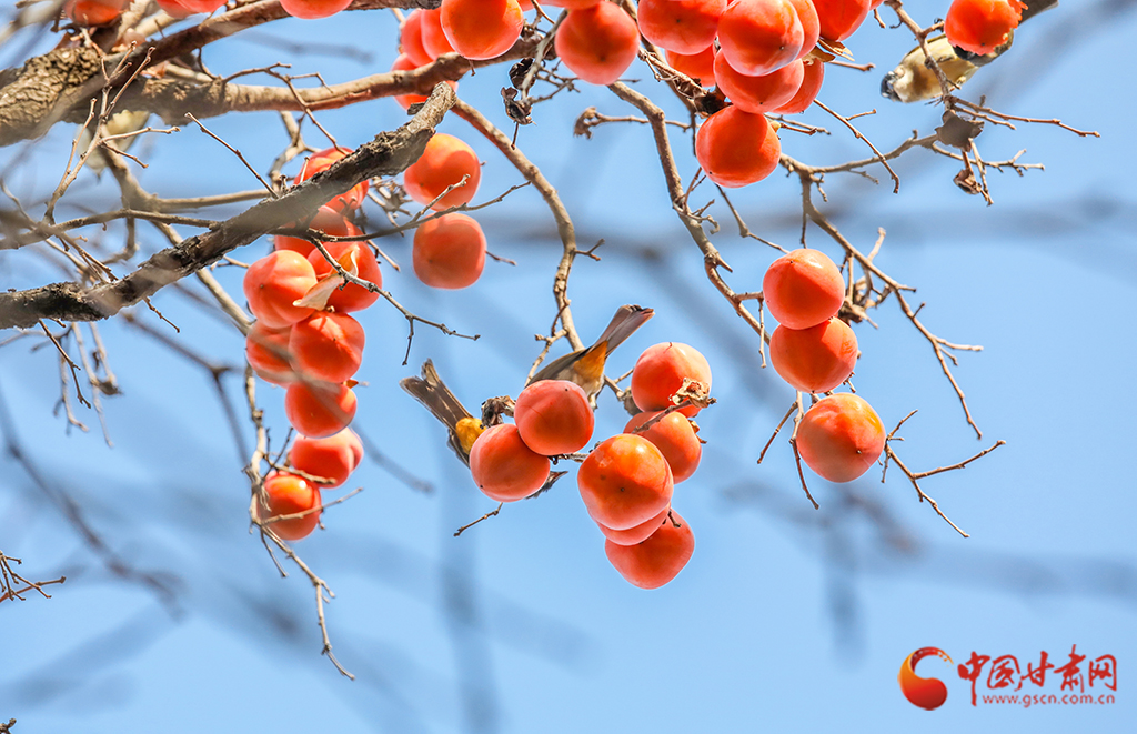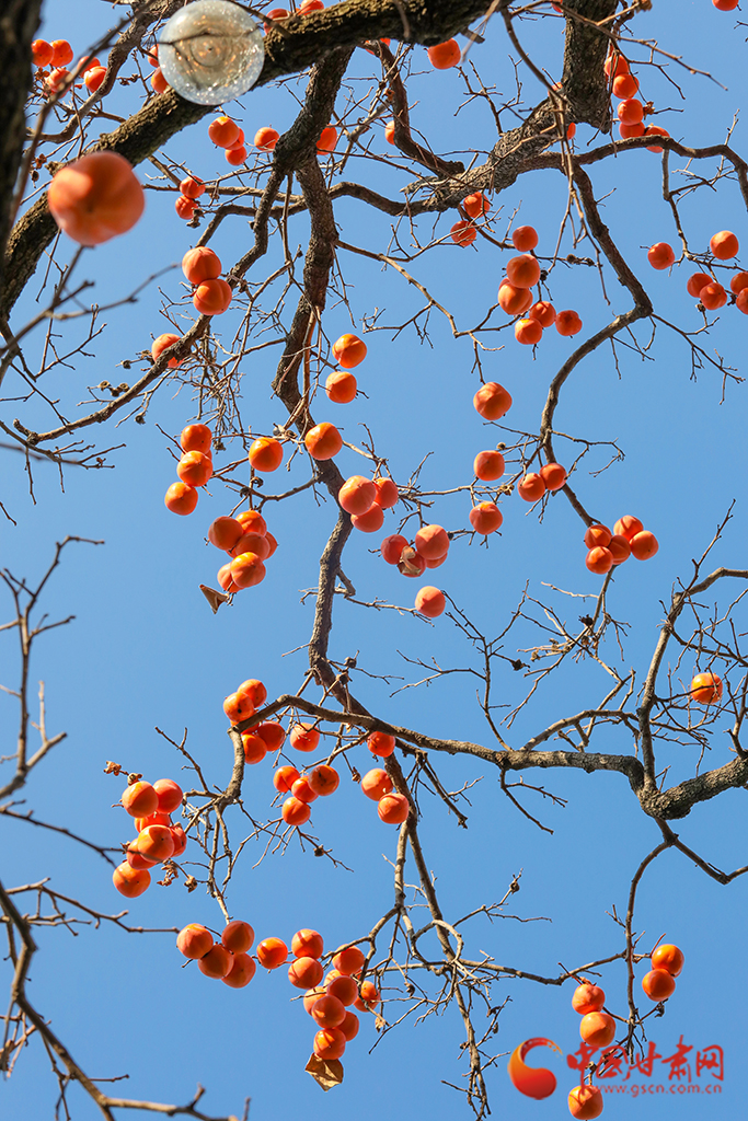 秋去冬來,萬物沉寂。在平?jīng)龀缧?,柿子樹上掛滿了果實(shí),又是一年柿子紅。