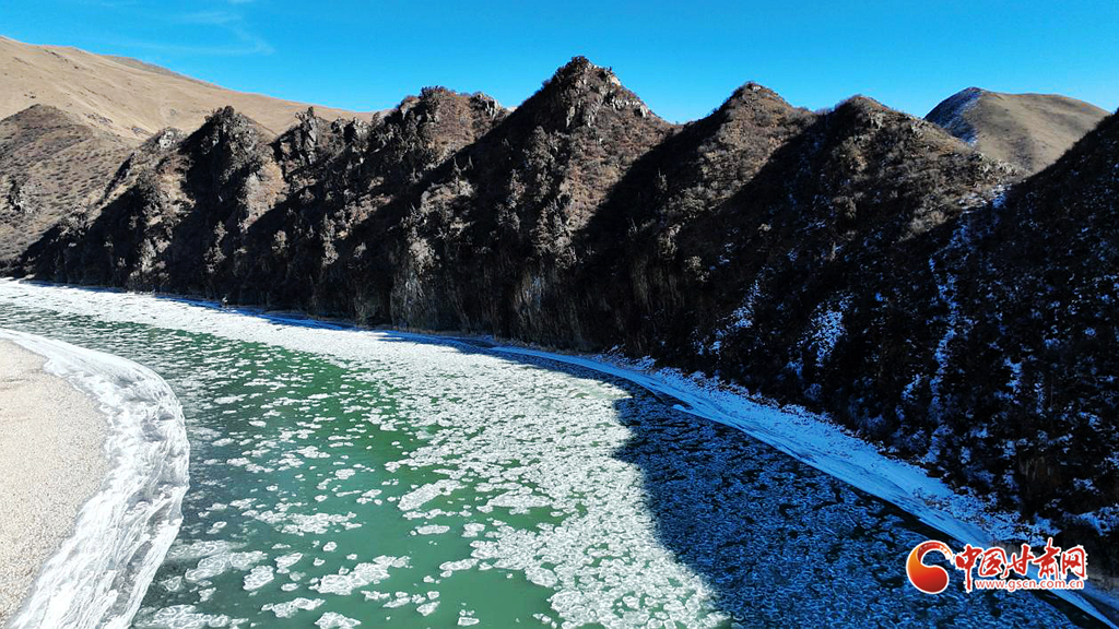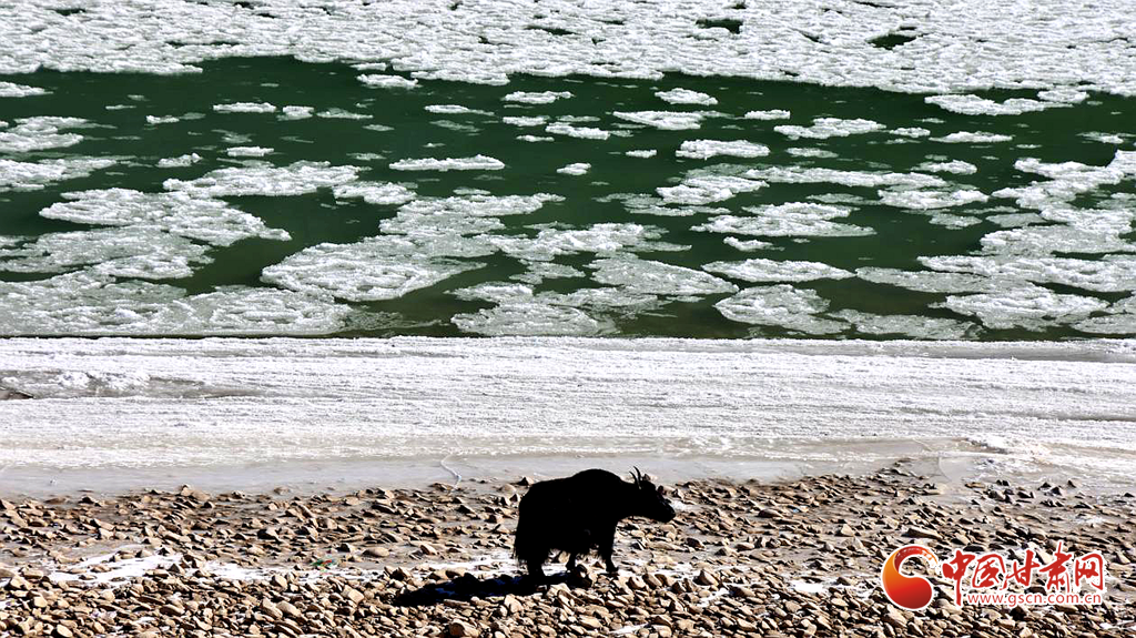 在黃河流經(jīng)甘肅的首站——瑪曲縣木西合鄉(xiāng)境內(nèi)的七仙女峰,此刻目睹黃河的壯麗風(fēng)光,流凌的出現(xiàn)為這幅天然畫(huà)卷增添了一抹濃重的色彩,晶瑩剔透的冰凌順流而下,互相碰撞,隨著河水浩浩蕩蕩蜿蜒向前,在陽(yáng)光的折射下,猶如珍珠瑪瑙般璀璨,鑲嵌在母親河的懷抱之中。