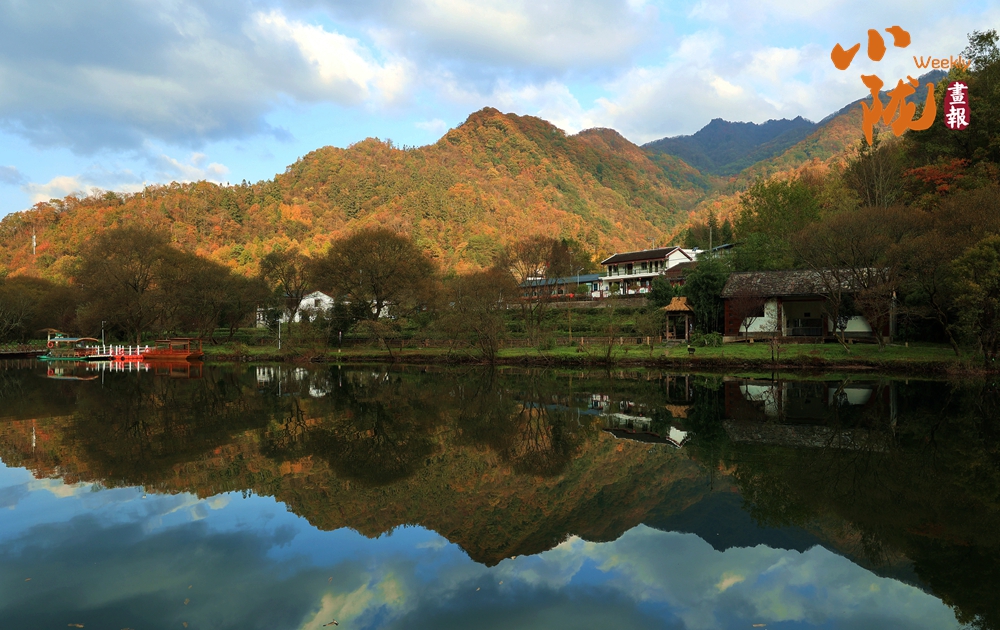 漫山染橙黃,彩池映秋色。天鵝湖湖波瀲滟,群山倒映,碧霞煙柳,移步換景,似乎走進了蘇州園林。
