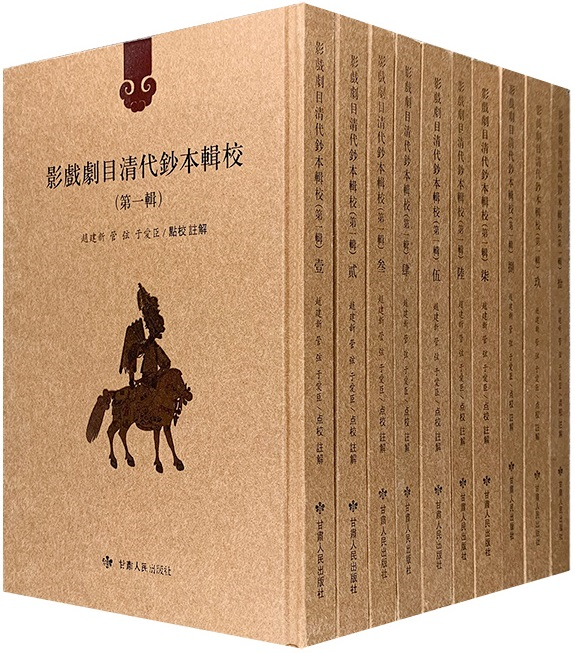 《影戲劇目清代鈔本輯校(第一輯)》(以下簡稱《影戲》),精裝全10冊,繁體豎排,260余萬字,2019年11月由甘肅人民出版社出版發(fā)行。該書為2018年國家古籍整理出版專項(xiàng)經(jīng)費(fèi)立項(xiàng)資助項(xiàng)目,由蘭州大學(xué)文學(xué)院退休教師趙建新教授、青年教師管弦共同點(diǎn)校輯錄并編纂出版。書中共收錄清代甘肅皮影戲傳世劇目60種,其中不乏甘肅影戲獨(dú)有的珍貴劇目,是對甘肅皮影戲劇目文獻(xiàn)的一次較大規(guī)模的搜集整理,也是歷年來對戲曲文獻(xiàn)進(jìn)行搜集整理的著作中收錄隴影劇目最多的一部,在中國戲曲研究領(lǐng)域具有重要的藝術(shù)價(jià)值、版本價(jià)值和學(xué)術(shù)意義。