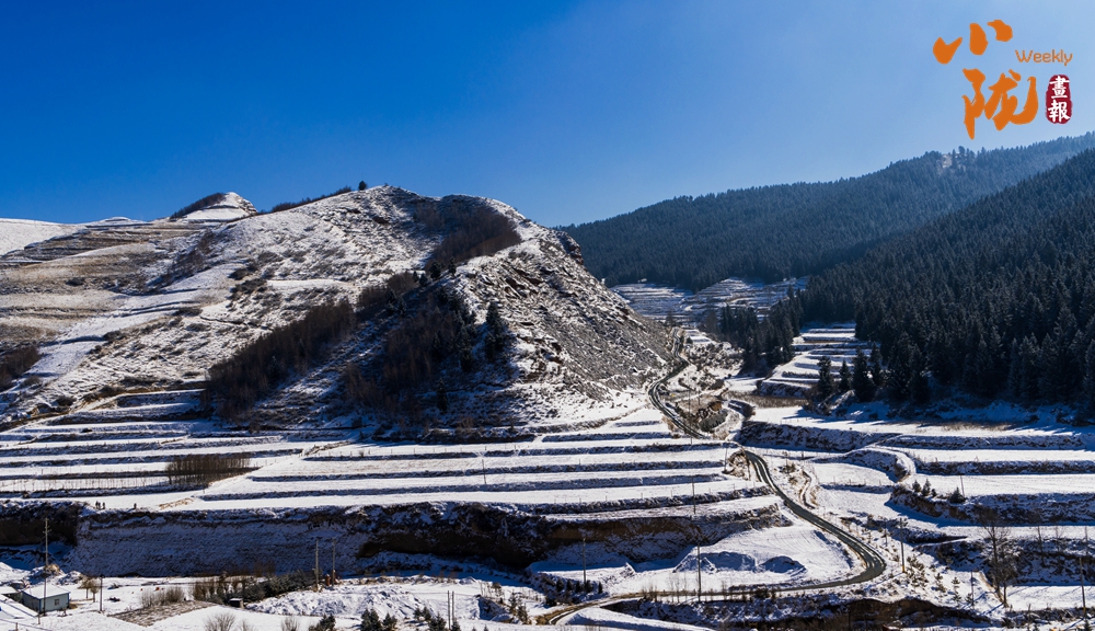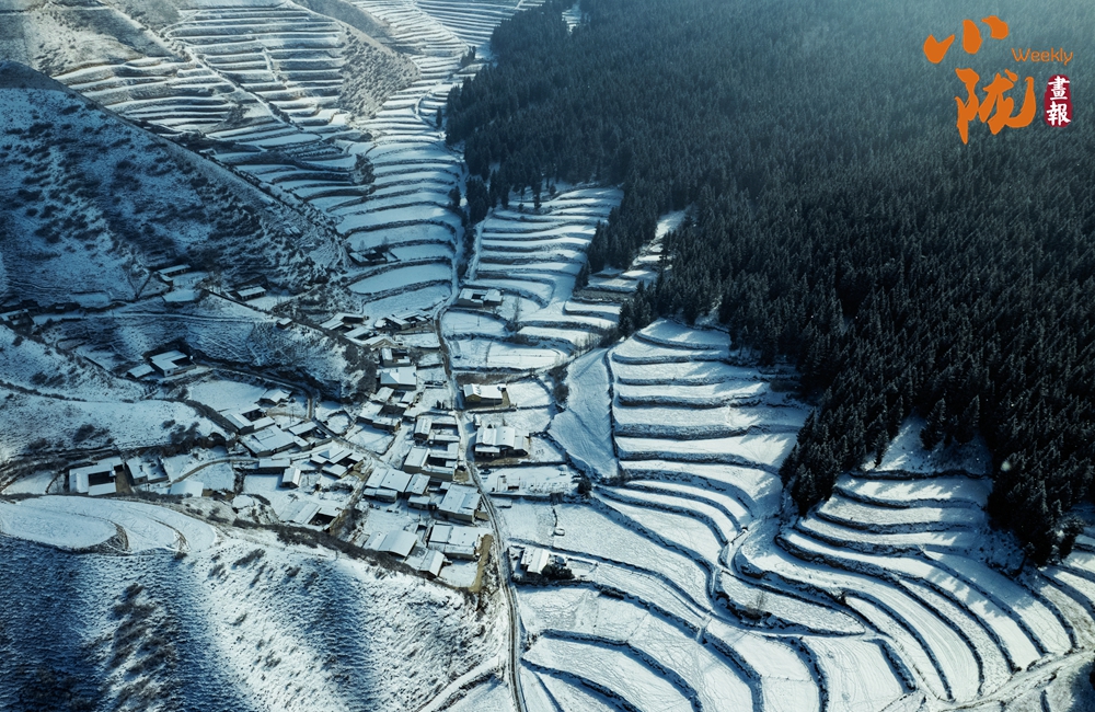 白雪覆蓋,梯田、山林、村落披上銀色華裳,一幅水墨畫般的動人景致。