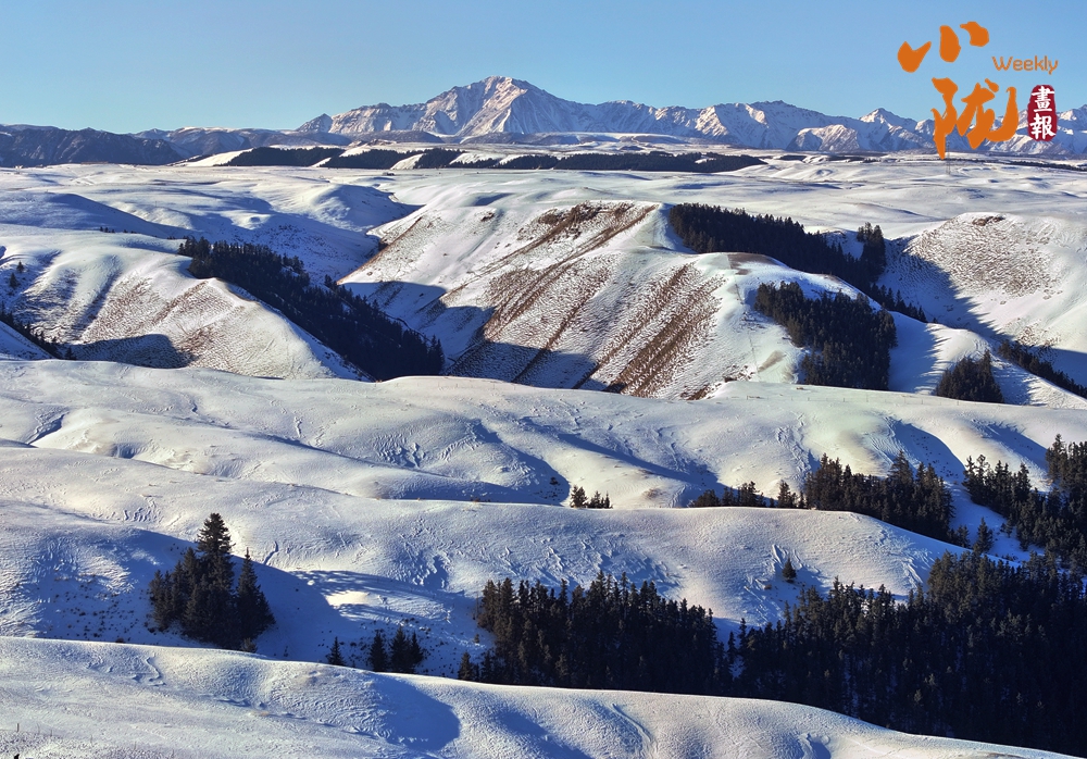 湛藍的天空下,山巒層層疊疊,銀裝素裹,閃爍著耀眼的光芒。