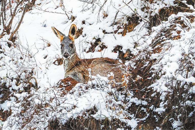 攝影師鏡頭下,一只馬麝安然臥在雪地上,它的耳朵偶爾會(huì)輕輕抖動(dòng)一下,像是在用心傾聽(tīng)著風(fēng)中傳來(lái)的細(xì)微聲響。它優(yōu)美的身形與周圍的景色完美融合在一起,寧?kù)o而祥和。