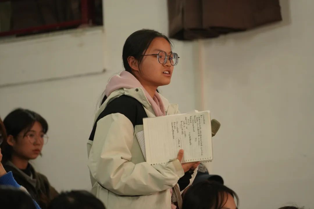 嘉賓發(fā)言環(huán)節(jié)結(jié)束后,同學(xué)們積極提問,林紅衛(wèi)從多個(gè)寫作角度解答了大家的困惑。她強(qiáng)調(diào),寫作需要用心觀察生活,通過反復(fù)練習(xí)將情感外化為行動(dòng),傳遞生活中的真善美。