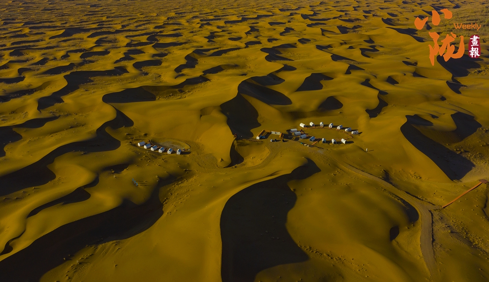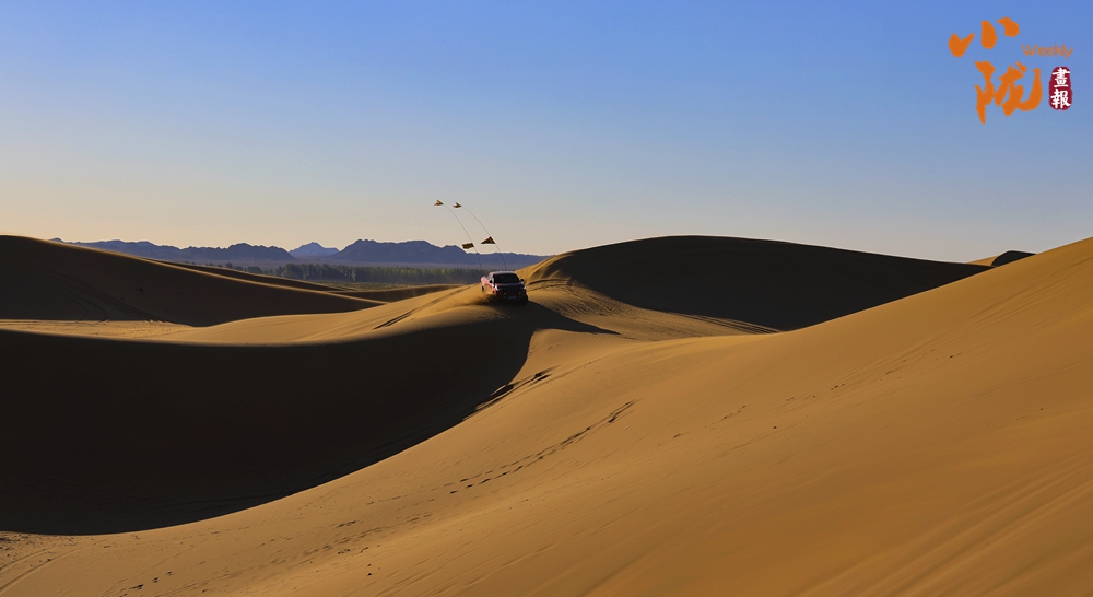 夕陽西下,極目遠眺,在余暉照耀下,連綿起伏的沙丘似金色的海浪,一波接著一波,涌向天際。那細膩的沙紋,在陽光的輕撫下,宛如歲月鐫刻的痕跡,每一道褶皺都藏著故事。