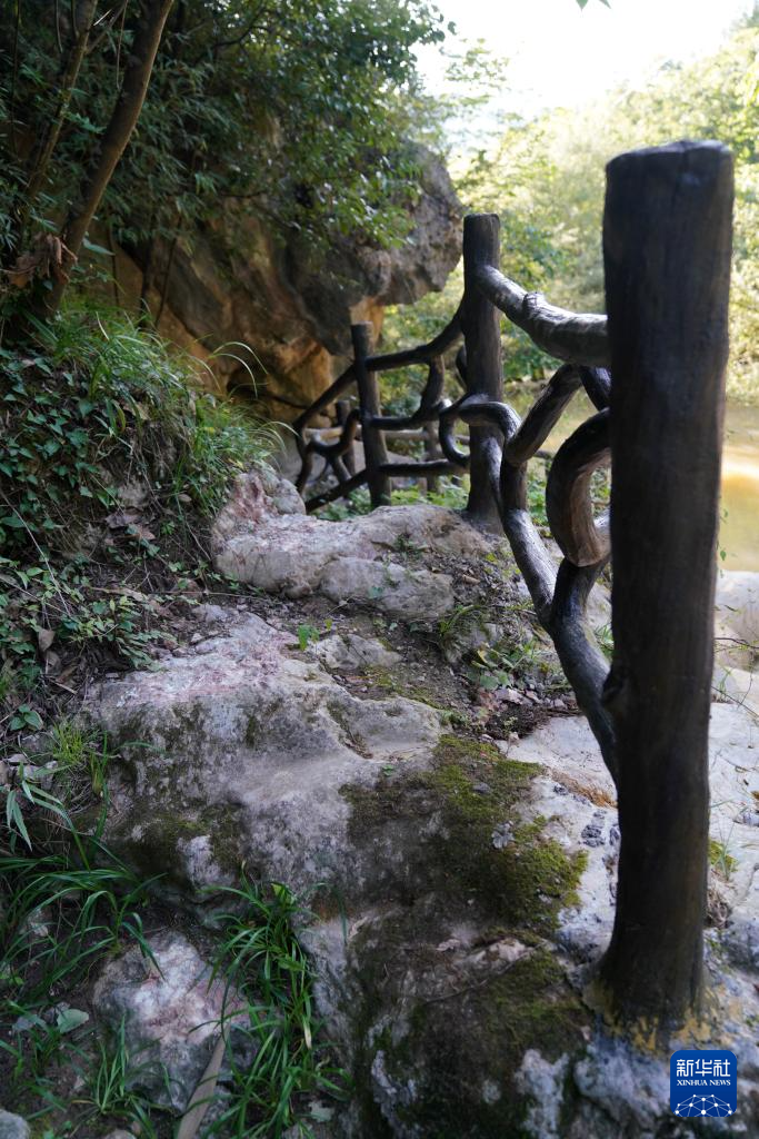 7月14日在青泥嶺拍攝的碥道遺存。新華社記者 陳斌 攝
