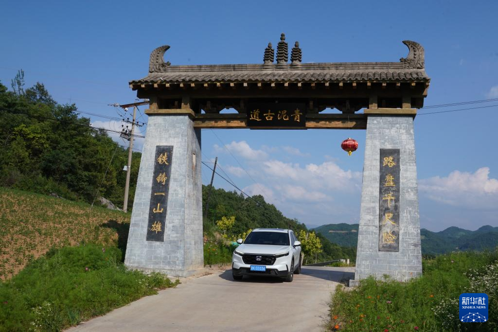 7月14日,一輛汽車行駛在青泥嶺上的鄉(xiāng)村公路上。新華社記者 陳斌 攝