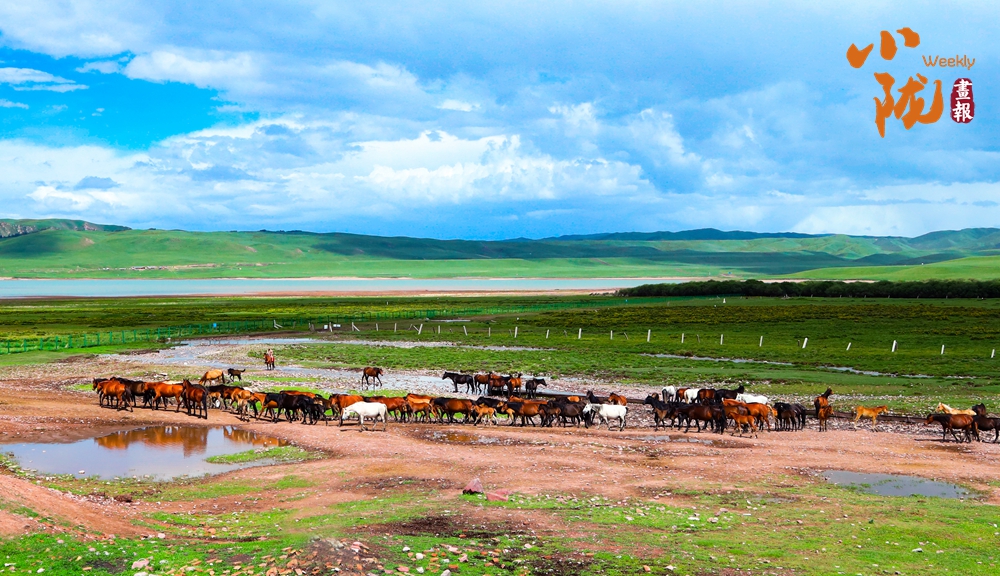 碧空澄澈,云朵如輕柔棉絮般漂浮其中,遠(yuǎn)處草場(chǎng)連綿起伏。牧民們趕著自家的馬群,向著繁茂的草場(chǎng)前行,氣勢(shì)雄壯。千百年來(lái),馬兒一直是草原上的英雄,載著厚重的歷史車(chē)輪,載著游牧民族的繁衍生息,載著蒼勁渾厚悠揚(yáng)的歌聲從亙古疾馳,滾滾而來(lái)。