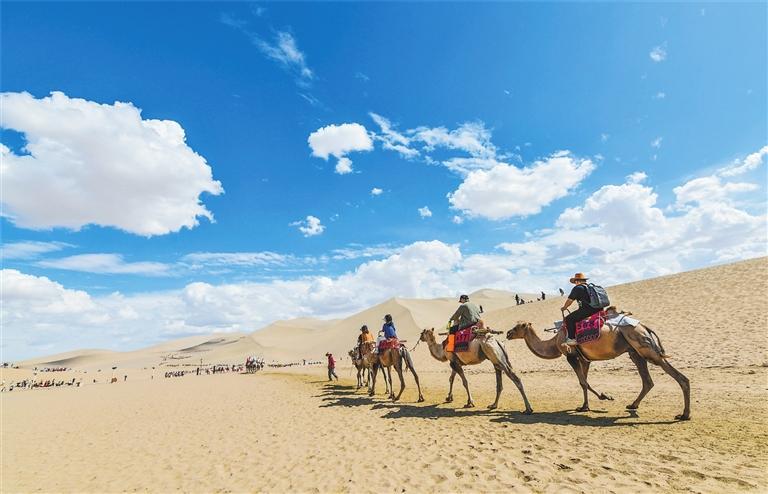 游客在鳴沙山游玩 王斌銀