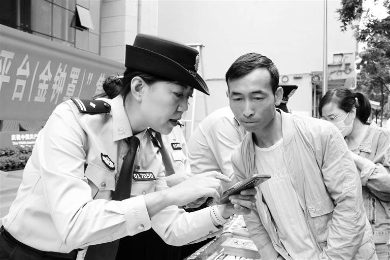民警指導(dǎo)群眾安裝注冊(cè)國家反詐中心APP(蘭州市公安局城關(guān)分局供圖)