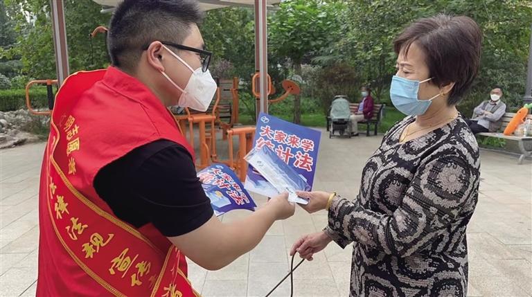 “大爺,了解一下統(tǒng)計(jì)法,這和我們老百姓的生活息息相關(guān)。”在欣欣茗園小區(qū)廣場,穿著紅馬甲的志愿者將統(tǒng)計(jì)法律法規(guī)宣傳彩頁送到市民手中,把法律意識(shí)送進(jìn)老百姓心中。“以前沒聽說過還有統(tǒng)計(jì)法,今天有送法進(jìn)社區(qū)活動(dòng),剛好借這個(gè)機(jī)會(huì)好好了解學(xué)習(xí)一下。”在小區(qū)廣場遛彎的張大爺一邊看著宣傳彩頁一邊說。
