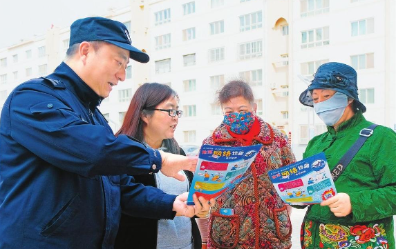 5月16日,嘉峪關(guān)公安民警在居民小區(qū)開展防范電信網(wǎng)絡(luò)詐騙宣傳活動
