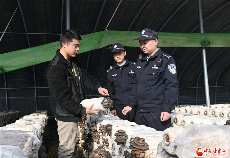 在西固區(qū)新城鎮(zhèn)青石金庭生態(tài)產(chǎn)業(yè)園,西固分局新城派出所民警宋振浩正在和蘑菇種植戶郭先生拉家常,詳細(xì)了解生產(chǎn)經(jīng)營情況,詢問實(shí)際困難和需求。