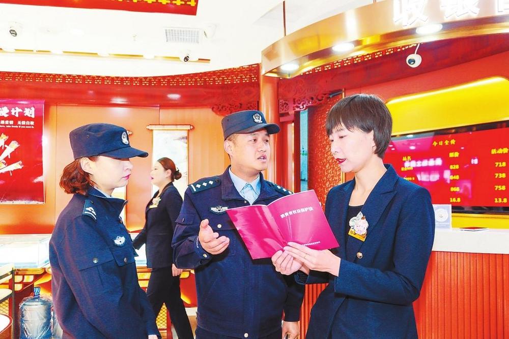 3月14日,蘭州市公安局七里河分局組織多個(gè)派出所民輔警走進(jìn)商超、餐飲、副食品店等營(yíng)業(yè)場(chǎng)所,開(kāi)展“3·15”消費(fèi)者權(quán)益日普法宣傳和專(zhuān)項(xiàng)檢查,倡導(dǎo)商家誠(chéng)實(shí)守信合法經(jīng)營(yíng),為消費(fèi)者營(yíng)造安全、放心的消費(fèi)環(huán)境。 新甘肅·甘肅法治報(bào)記者張瑞軍攝