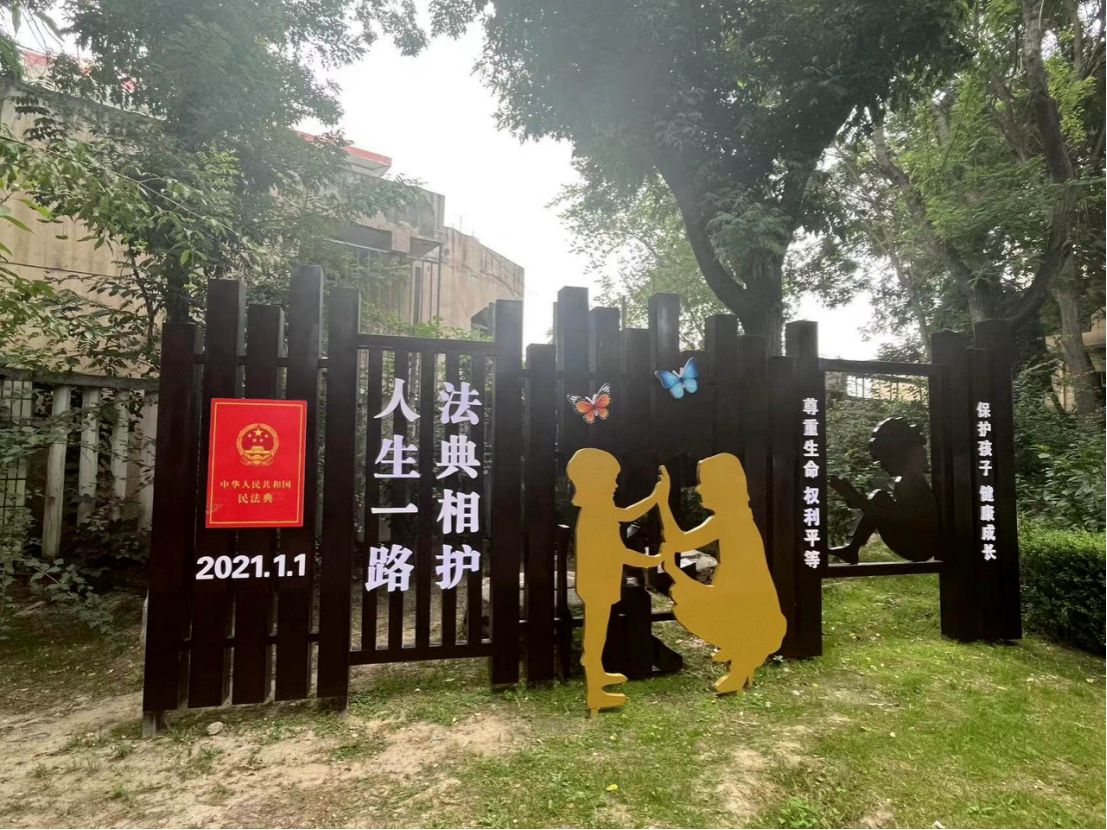 除了線上“第一課”,記者看到,金城公園設(shè)置憲心園、典護園、網(wǎng)絡(luò)安全主題區(qū)、法治文化廣場四大主題普法區(qū):憲心園設(shè)巨型《憲法》刻書;典護園設(shè)立了《民法典》宣傳建筑與母子雕塑;網(wǎng)絡(luò)安全主題區(qū)則以圓形建筑為“防護墻”,聚焦網(wǎng)絡(luò)詐騙、個人信息保護等,提升網(wǎng)絡(luò)安全意識;法治文化廣場融合明清仿古建筑與現(xiàn)代法律元素,設(shè)置《民法典》生活展牌、網(wǎng)絡(luò)普法園等。