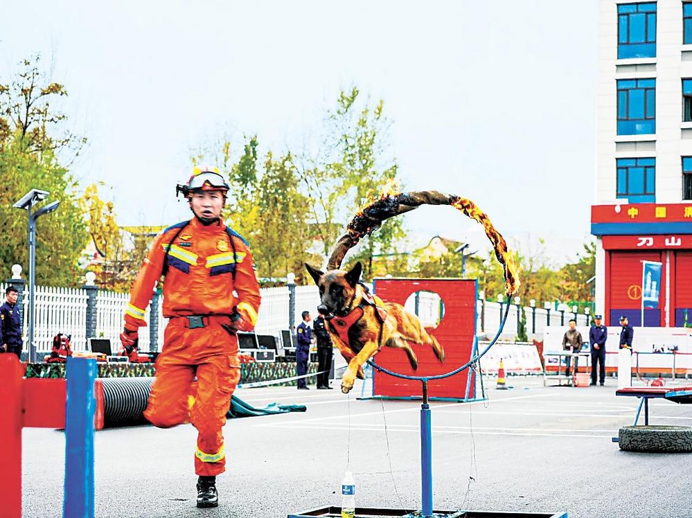 搜救犬搜救演練現(xiàn)場(chǎng)。臨夏州消防救援支隊(duì)供圖