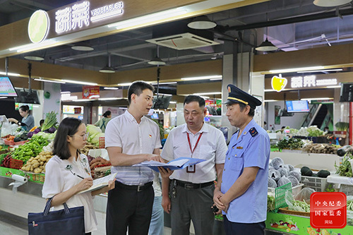 圖為南京市棲霞區(qū)紀(jì)委監(jiān)委針對(duì)“陽(yáng)光惠民”監(jiān)管平臺(tái)上的預(yù)警信息,組織力量核查該區(qū)星級(jí)農(nóng)貿(mào)市場(chǎng)獎(jiǎng)勵(lì)資金撥付方面的問題線索。