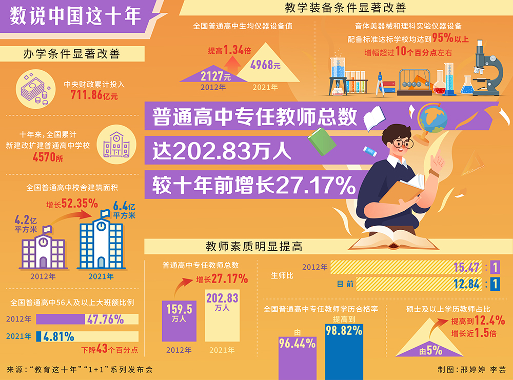 數(shù)說中國(guó)這十年丨普通高中專任教師總數(shù)達(dá)202.83萬人