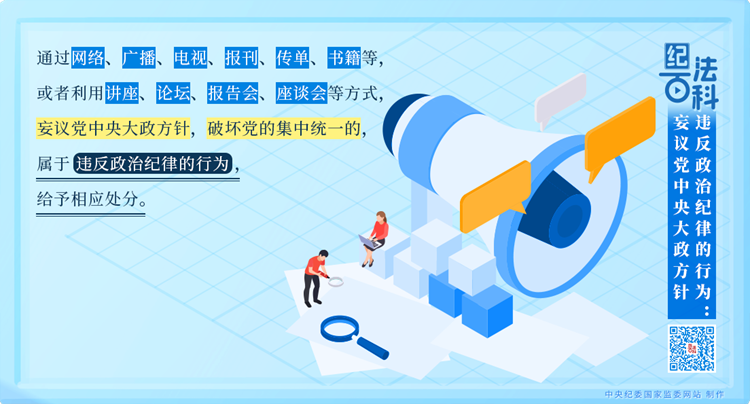 執(zhí)紀(jì)監(jiān)督中發(fā)現(xiàn),有的黨員、干部“當(dāng)面不說、背后亂說”“會上不說、會后亂說”“臺上不說、臺下亂說”,對黨中央大政方針說三道四。這些言論擾亂黨員、干部思想,破壞黨的團(tuán)結(jié)統(tǒng)一,妨礙黨中央大政方針的貫徹落實(shí),必須依規(guī)依紀(jì)嚴(yán)肅處理。