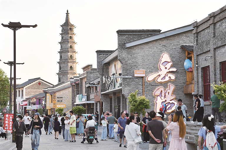 湖南省岳陽市將文化基因轉化為發(fā)展動能,讓千年文脈與時代脈搏同頻共振。圖為游客在該市洞庭南路歷史文化街區(qū)休閑游玩。新華社發(fā)
