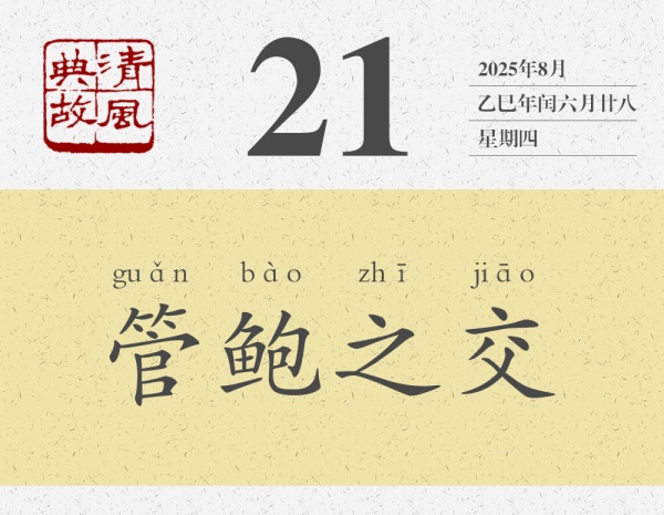 管仲和鮑叔的深厚友誼,經(jīng)受住了時間的考驗(yàn),經(jīng)受住了名利的考驗(yàn),也經(jīng)受住了生死的考驗(yàn),因而成為千古佳話?!读凶?bull;力命》:“管仲嘗嘆曰:‘吾少窮困時,嘗與鮑叔賈,分財多自與;鮑叔不以我為貪,知我貧也。吾嘗為鮑叔謀事而大窮困,鮑叔不以我為愚,知時有利不利也。吾嘗三仕,三見逐于君,鮑叔不以我為不肖,知我不遭時也。吾嘗三戰(zhàn)三北,鮑叔不以我為怯,知我有老母也。公子糾敗,召忽死之,吾幽囚受辱,鮑叔不以我為無恥,知我不羞小節(jié)而恥名不顯于天下也。”