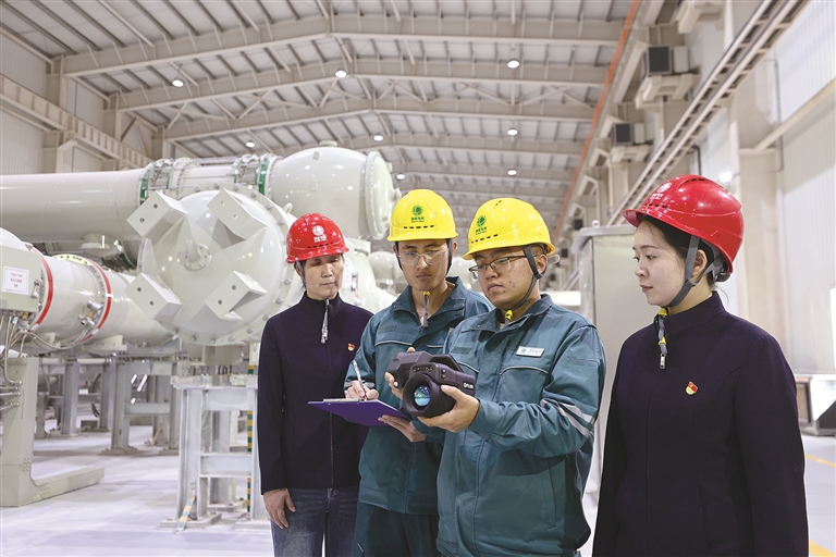 國(guó)網(wǎng)寧夏電力有限公司紀(jì)委以有力監(jiān)督推動(dòng)“寧電入湘”特高壓線路工程投運(yùn)后各項(xiàng)工作平穩(wěn)有序推進(jìn)。圖為近日,該公司紀(jì)委工作人員在國(guó)網(wǎng)寧夏超高壓公司中寧換流站開(kāi)展現(xiàn)場(chǎng)監(jiān)督檢查。王天鵬 攝