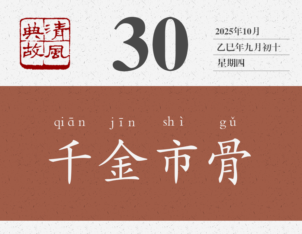 多虧燕昭王是真的需要賢才,多虧郭隗真的是個(gè)賢才,也多虧許多賢才真的來了。否則,“千金買骨”就成了一個(gè)典型的“噱頭”,郭隗講這個(gè)故事就是典型的“自我營銷”。后世即用它來比喻求賢若渴或重金招攬人才。黃庭堅(jiān)詩《詠李伯時(shí)摹韓幹三馬次蘇子由韻》:“千金市骨今何有,士或不價(jià)五羖皮。”