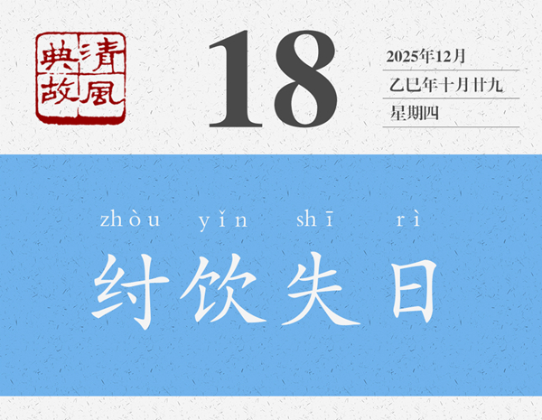 一提起商紂王,大概就會(huì)想起沉湎酒色、窮兵黷武、重刑厚斂等等,與之相關(guān)的典故也有酒池肉林、炮烙之刑、牝雞司晨等等。“歡以失日”是他沉湎酒色的又一個(gè)故事,往輕處說就是酒醉失憶了,往重處說就是把一切都拋到九霄云外了?;樱醋玉阌?,商紂王的叔父,官至太師,封于箕,故稱箕子,“殷末三仁”之一,《論語·微子》曰:“微子去之,箕子為之奴,比干諫而死,殷有三仁焉。”箕子曾多次勸諫紂王,但紂王不聽,他心灰意冷,索性披發(fā)佯狂,紂王見此,以為箕子真瘋了,遂將他囚禁起來,貶為奴隸。有了這個(gè)背景,就知道箕子為什么要“辭以醉而不知”了。后世則以“紂飲失日”為典,形容生活荒唐混亂,也用來形容不辨時(shí)間。黃遵憲詩《倫敦大霧行》:“蒼天已死黃天立,倒海翻云百神集。一時(shí)天醉帝夢(mèng)酣,舉國沉迷同失日。”