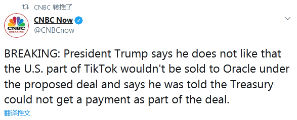 【環(huán)球網(wǎng)快訊】據(jù)CNBC剛剛消息,美國總統(tǒng)特朗普在16日的白宮新聞?dòng)浾邥戏Q,他不喜歡目前甲骨文與TikTok目前擬定的合作協(xié)議,原因是TikTok的美國業(yè)務(wù)不會出售給甲骨文,而且他還被告知,美國財(cái)政部將無法從這次交易中拿到補(bǔ)償。