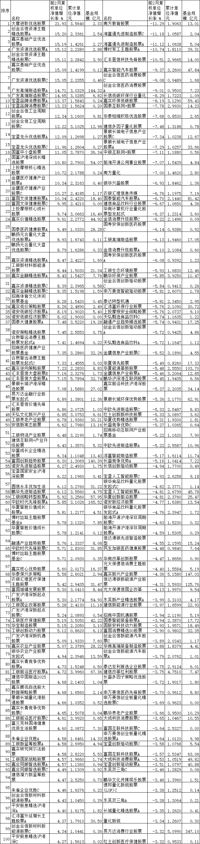 跌幅榜上,前2月跌幅超過(guò)10%的普通股票型基金僅有5只,跌幅超過(guò)5%的共有54只。跌幅靠前的基金大多重倉(cāng)新能源、科技等行業(yè)個(gè)股,近期該類個(gè)股回調(diào)幅度較大,導(dǎo)致重倉(cāng)基金業(yè)績(jī)回撤明顯。