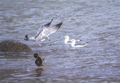海鷗爭(zhēng)魚。張福昌2019年12月中旬?dāng)z于蘭州城關(guān)黃河大橋。