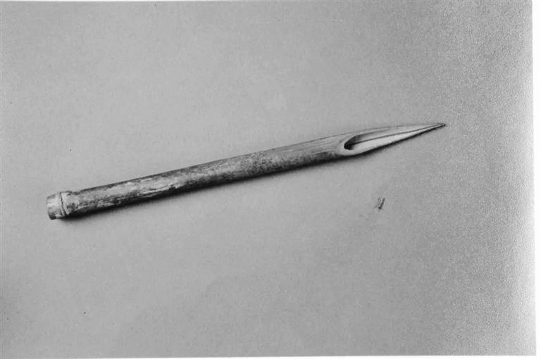 1972年,人們?cè)诟拭C武威張義堡西夏遺址中,發(fā)掘出土了這支西夏竹筆,同時(shí)出土的還有其他兩支竹筆。據(jù)推測,它們是12世紀(jì)西夏人制作使用的硬筆。