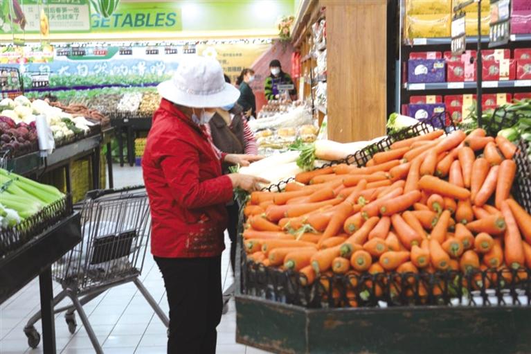 3月21日,華聯(lián)超市交大店內,各大貨柜上的商品種類齊全,大米、面粉、食用油、蔬菜水果、面點熟食、肉禽水產等百姓日常生活所需的物品儲備充足。前來購物的市民在各個區(qū)域從容購物、理性消費。在果蔬區(qū)域,市民正在挑選蔬菜、水果,售貨員及時補充蔬菜,整齊擺放在貨架上。安寧區(qū)保障生活物資供應平穩(wěn)有序,通過生活用品進貨量、出貨量、庫存量以及貨品價格日監(jiān)測、疏通物流渠道,確保百姓的“米袋子”“菜籃子”“果盤子”以及各類生活用品數(shù)量充足、價格穩(wěn)定。該區(qū)商務、市場監(jiān)管等職能部門持續(xù)對區(qū)域內各大商場、超市進行追蹤服務和監(jiān)督,落實常態(tài)化疫情防控各項措施,配合商場進一步做好防疫工作,為市民提供一個安全、穩(wěn)定的消費環(huán)境。